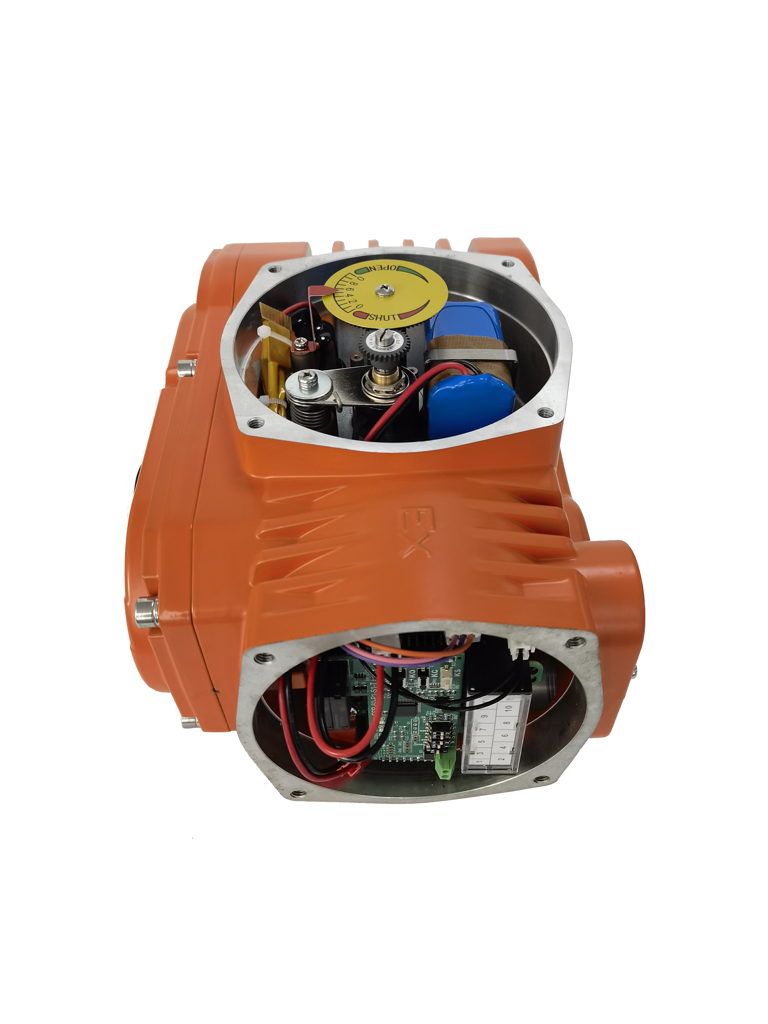 Door middel van de optioneleterugzetten van de uitschakelingIn het geval van een stroomstoring kan de elektrische aandrijving de klep naar een vooraf geconfigureerde veiligheidspositie brengen.volledig gesloten,volledig open, of omde huidige positie behouden.